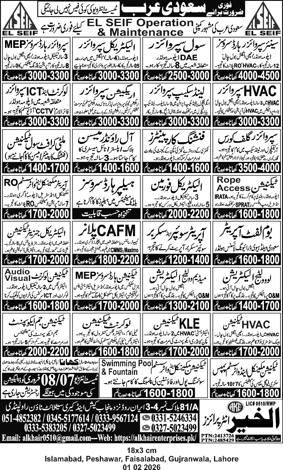 (Driver :Heavy Driver, Driver: Water Tanker Fitted with suction pump, Operator : Skid steering, Operator : Truck mounted, Operator :Heavy Road Sweeper, Operator: Road Washing Machine, Operator: Sweeper Scrubber, Equipment Operator, Bobcat Operator, Excavator Operator, Electrical Technical Helper, Industrial Electrician