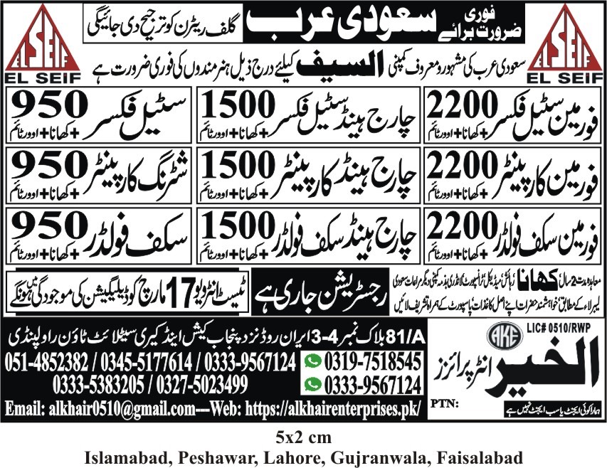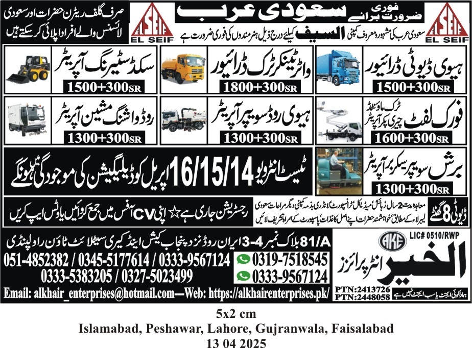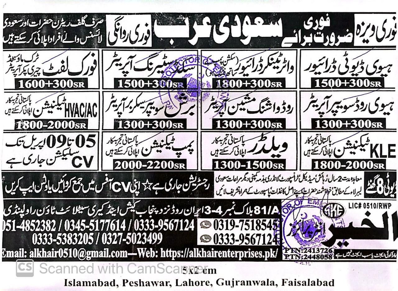 Hiring for Saudi Arabia - 15/04/2025
